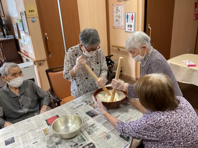ご利用者様と一緒にヘラつき餅作りを行いました(^^♪