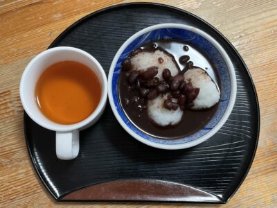 午後のお茶の時間に苑で育てた『小豆』で作ったお汁粉に