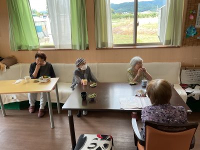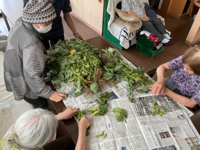 菜康苑では、枝豆の収穫時期となり、ご利用者様で枝豆取りを