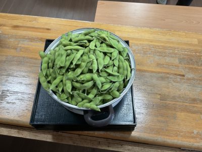 皆様慣れた手つきであっという間に枝豆取りして頂きました。