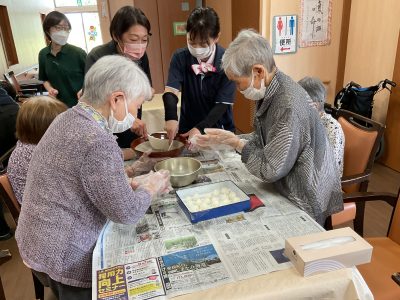 ご利用者様と一緒にヘラつき餅作りを行いました(^^♪