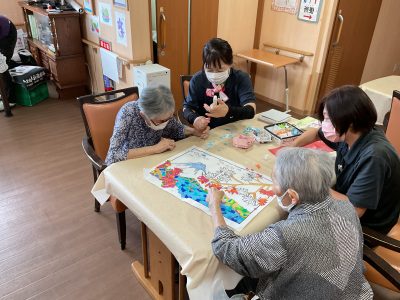 9月に入り、いよいよ秋ですね(‘◇’)ゞ夜は少し涼しくなってきましたね!南館では、9月の壁画作りを制作しております。